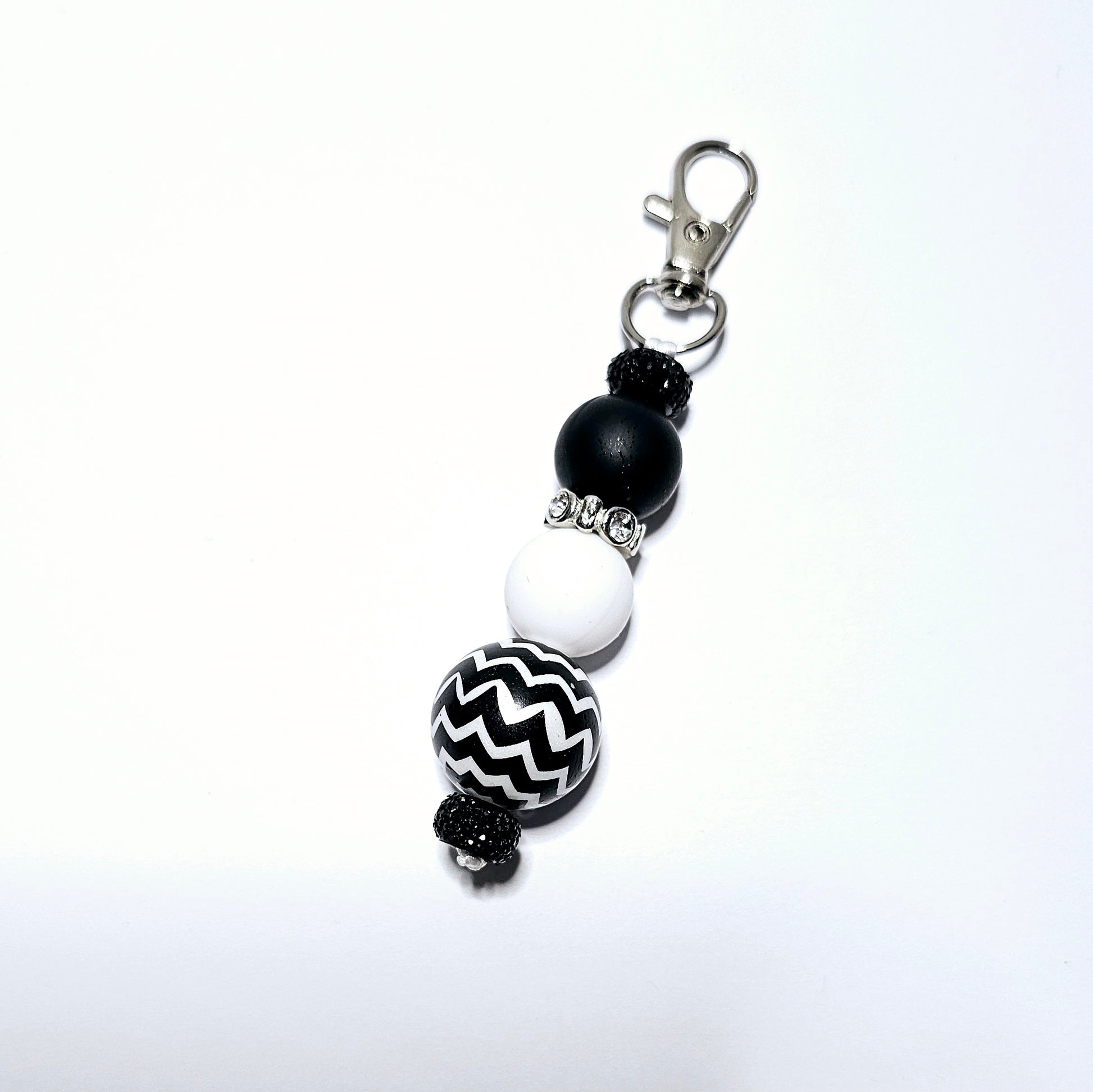 Every keychain in our collection is one of a kind, ensuring that no two are exactly alike – just like you! The soft and durable silicone beads are perfect for a pop of color and a gentle touch, while the acrylic beads add a glossy finish that catches the eye. The metal beads provide a touch of sophistication, and the rhinestone beads add a dazzling sparkle that brings the whole design to life.