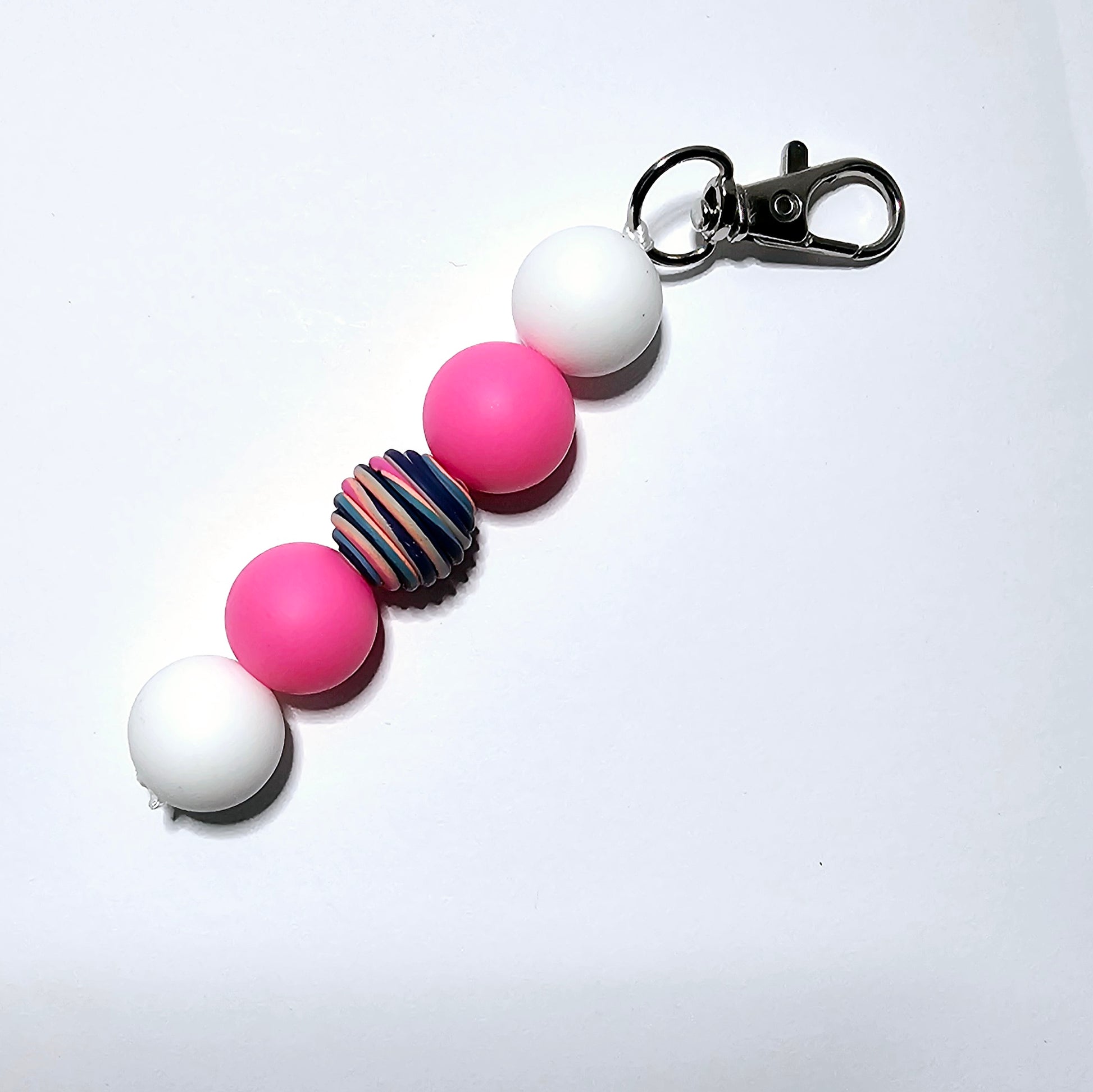 Introducing our charming collection of handmade keychains, each piece a unique treasure waiting to adorn your keys, bags, or wherever you fancy a touch of cuteness! Crafted with love, these keychains combine the playful colors of silicone beads, the sleek shine of acrylic beads, the classic elegance of metal beads, and the sparkling brilliance of rhinestone beads.