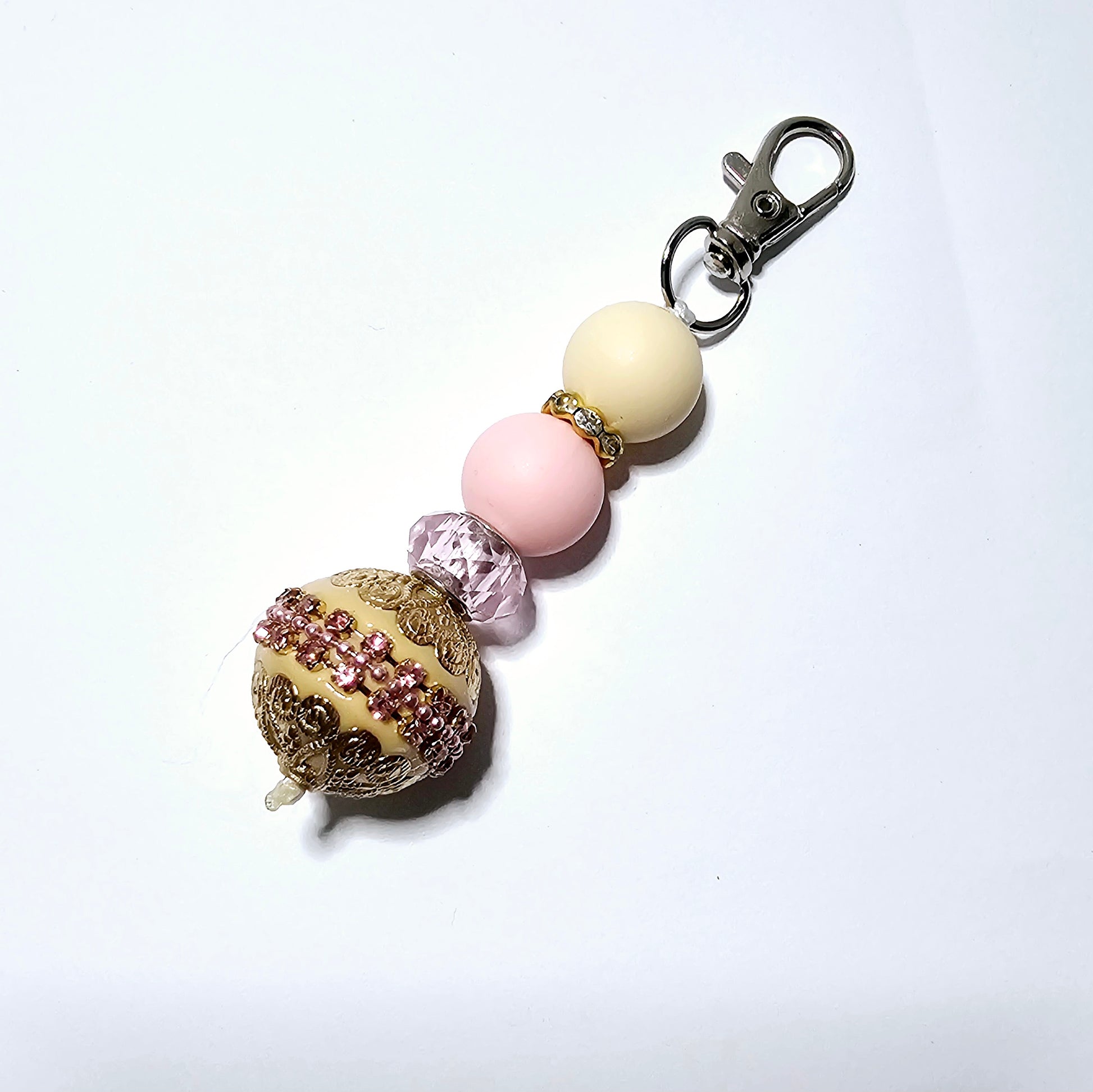 Introducing our charming collection of handmade keychains, each piece a unique treasure waiting to adorn your keys, bags, or wherever you fancy a touch of cuteness! Crafted with love, these keychains combine the playful colors of silicone beads, the sleek shine of acrylic beads, the classic elegance of metal beads, and the sparkling brilliance of rhinestone beads.