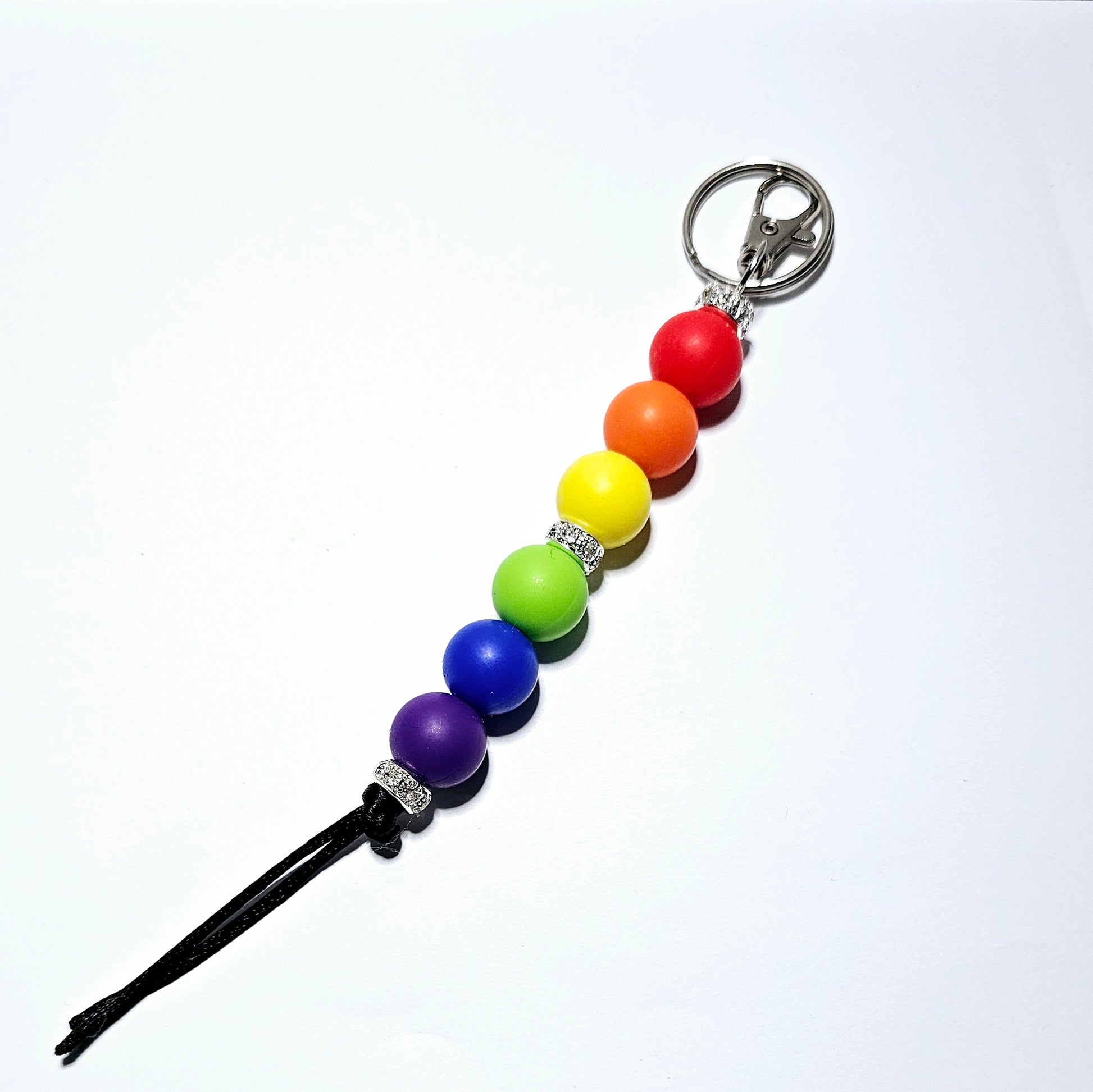 Every keychain in our collection is one of a kind, ensuring that no two are exactly alike – just like you! The soft and durable silicone beads are perfect for a pop of color and a gentle touch, while the acrylic beads add a glossy finish that catches the eye. The metal beads provide a touch of sophistication, and the rhinestone beads add a dazzling sparkle that brings the whole design to life.