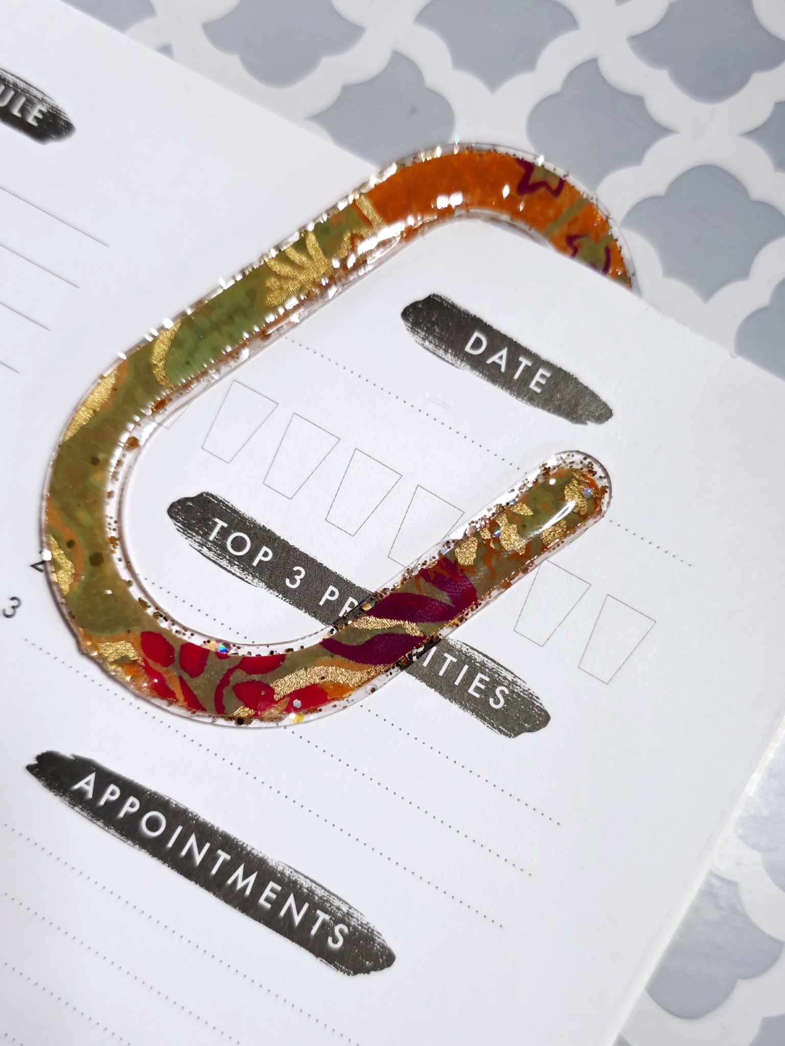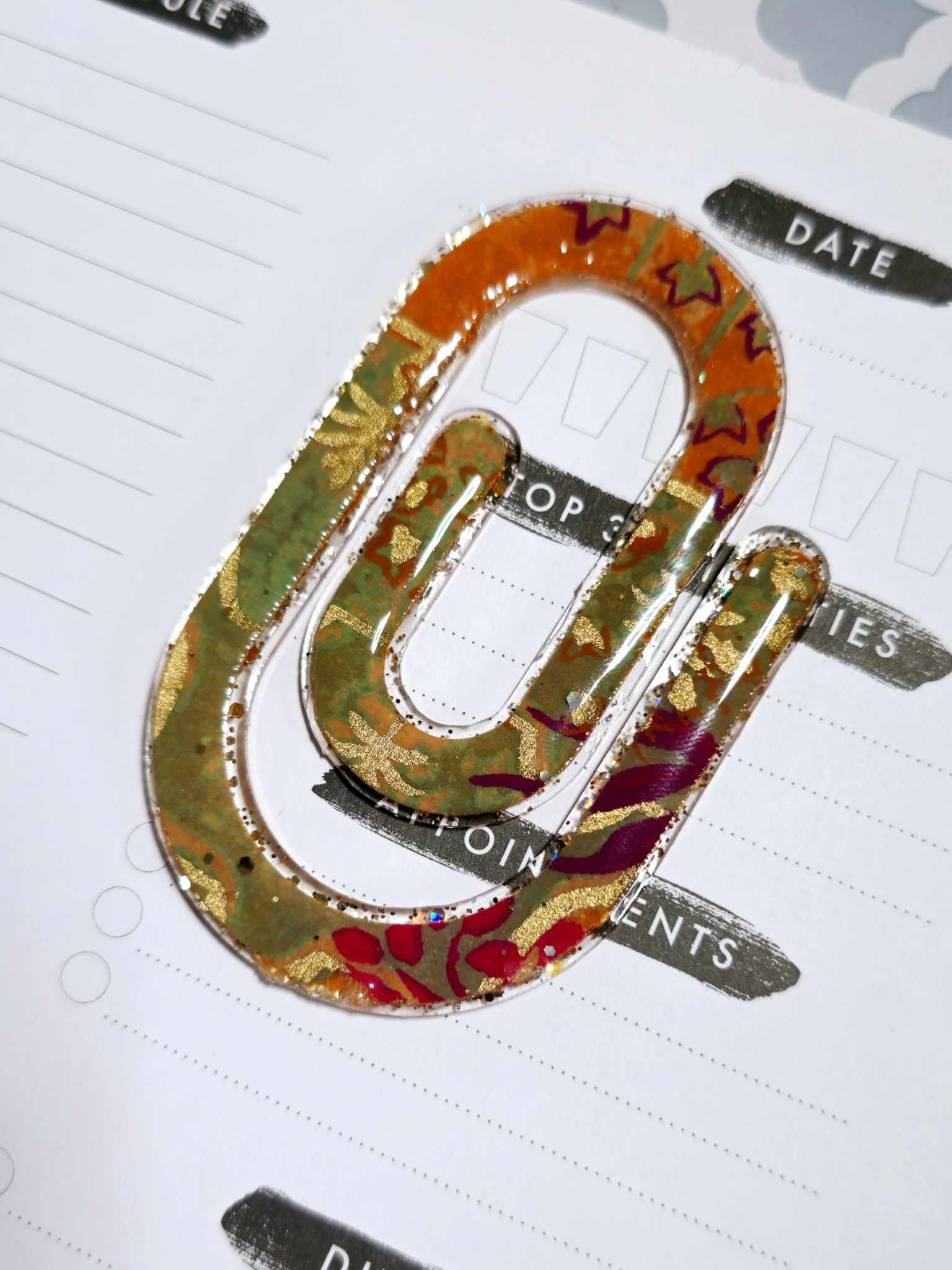 Add a touch of sparkle to your reading experience with our handmade jumbo paper clip bookmarks. These beauties are crafted from epoxy resin, painted with vibrant hues, and sprinkled with glitter for that extra pop. They're perfect for anyone who wants to mark their place in style.