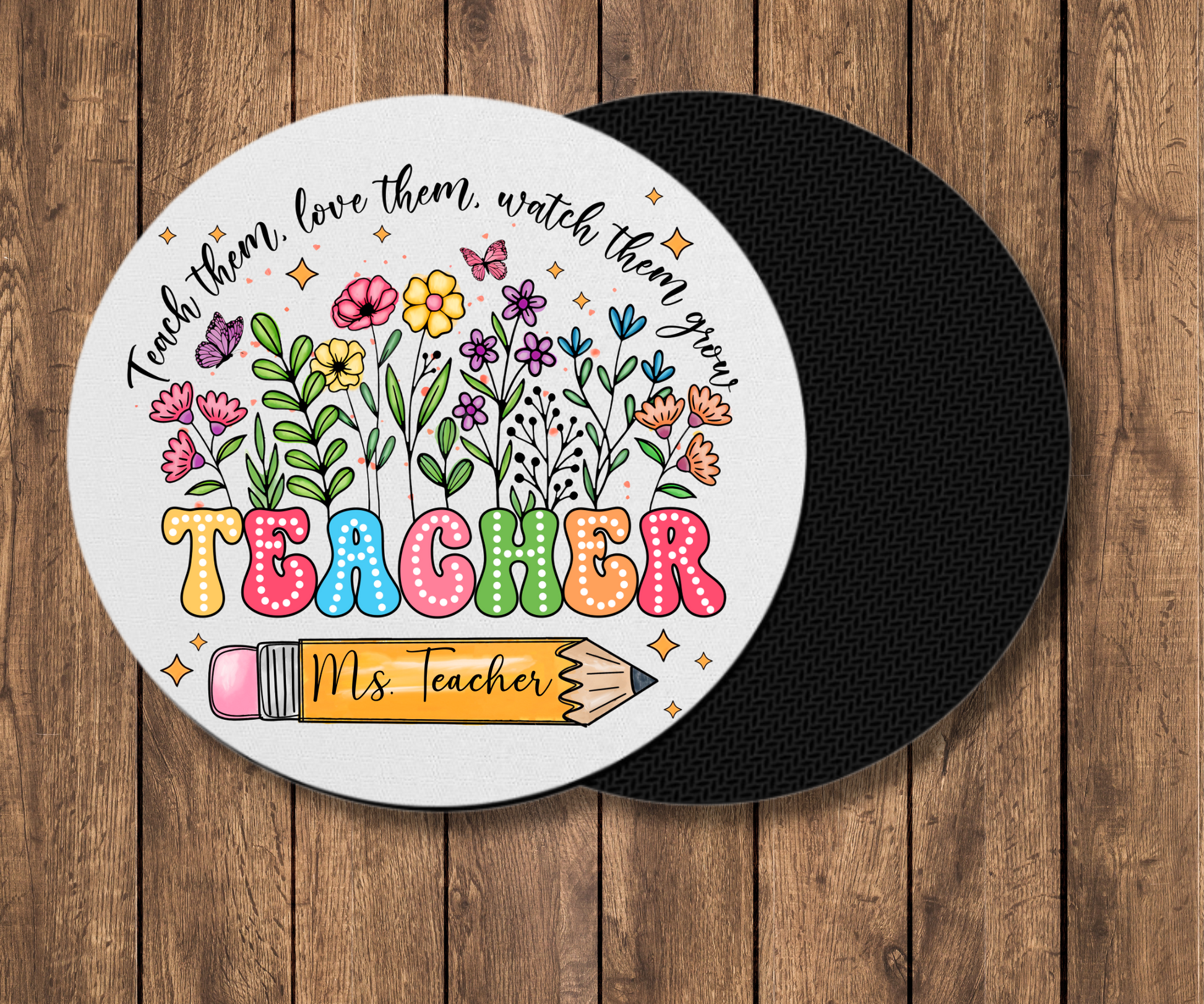Brighten your desk setup with our stunning floral mouse pad, designed to inspire and motivate every time you work. This colorful round 7.87 x 7.87-inch mouse pad features a vibrant floral design and the heartfelt words “Teach them, love them, watch them grow.”